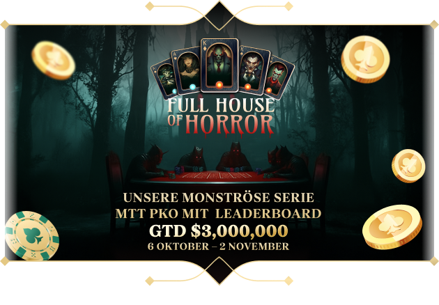 Vom 6. Oktober bis 2. November lädt FullHouseCrypto Sie mit einer einzigartigen Halloween-Serie in die Schatten ein. Der Filz verwandelt sich in eine gespenstische Arena voller unheimlicher Anblicke, gruseliger Spannung und spannender Action an jedem Tisch.
